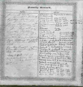 | James Hathaway Born May 15th 1827 Rachel D. Hathaway Born Nov. 6th 1834 Isreal F. Hathaway Born Aug 20th 1851 Cynthia Hathaway Daughter of James & Rachel Born Sept 25th 1853 Mary Hatheway Daughter of James and Rachel Born Feb. 10 , 1856 Rhody S. Hathaway Daughter of James & Rachel Born (April) 18th 1857 |