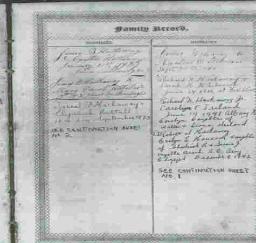 | James Hathaway & Racheal D. Fillmore Sept 20th 1850 Richard N. Hathaway & Sarah H Whitworth June 14, 1916 at Fall River Richard N. Hathaway Jr. Carolyn F. Ireland June 14, 1941 Albany Carolyn Daughter of Walter & Liona Ireland Lt. Robert I. Hathaway Evelyn E. Hancock Daughter of Shedrick R. & Susie J. Myrtle Beach S.C. Army Chappel December 8, 1942 SEE CONTINUTION SHEET NO. 1 |